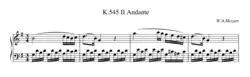 Piano has usually two set of staves, for right hand and left hand respectively. Here we put an example sheet music names "K545.abc".