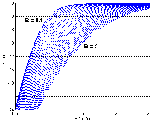 Notice that the case is the Butterworth alignment. The reason that this QB alignment is called 3rd order is due to the fact that as B increases, the slope approaches 3 dec/dec instead of 4 dec/dec, as in 4th order Butterworth. This phenomenon can be seen in Figure 5.