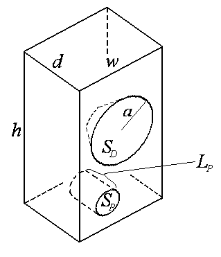 In this figure, represents the radiation impedance of the outside environment on the loudspeaker diaphragm. The loading on the rear of the diaphragm has changed when compared to the sealed enclosure case. If one visualizes the movement of air within the enclosure, some of the air is compressed and rarified by the compliance of the enclosure, some leaks out of the enclosure, and some flows out of the port. This explains the parallel combination of , , and . A truly realistic model would incorporate a radiation impedance of the port in series with , but for now it is ignored. Finally, , the acoustical mass of the enclosure, is included as discussed in the sealed enclosure case. The formulas which calculate the enclosure parameters are listed in Appendix B.