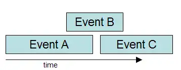 - Constraint: No events can intersect (start time exclusive). That is, for all intervals where it holds that .