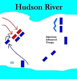 The American rangers were followed through the woods and field of Harlem by British Light troops. The British troops began to sing and sounded their bugle horns to signal that it was a fox-chase. Upon hearing this, an officer went to Washington and asked for reinforcements. Washington was reluctant but he devised a plan to entrap the British troops. The plan was to make a feint in front of a hill, and then draw the British troops into a hollow while waiting for the flanking part to entrap them. The plan worked, and the British troops were drawn into the hollow.