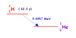 This scheme is for hydrogen-3 which decays to helium-3 with a half-life of 12.3 years through the emission of a beta-minus particle with an energy of 0.0057 MeV.