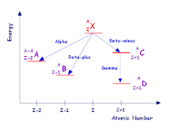 Rather than considering what happens to individual nuclei it is perhaps easier to consider a hypothetical nucleus that can undergo many of the major forms of radioactive decay. This hypothetical nucleus is shown below: