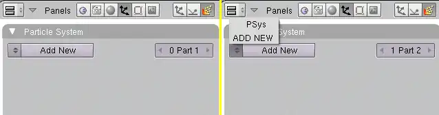 - The settings for the first particle system are no longer shown, now it reads 1 Part 2 (Fig. 2a, right hand side).