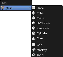 Blender’s Object-mode “Add” menu ( SHIFT + A ) contains a Mesh submenu with a collection of pre-made mesh objects. Think of these as starting points. They make building your own objects easier by enabling you to modify an object that is an approximation of the form you want instead of having to construct a mesh entirely from scratch.