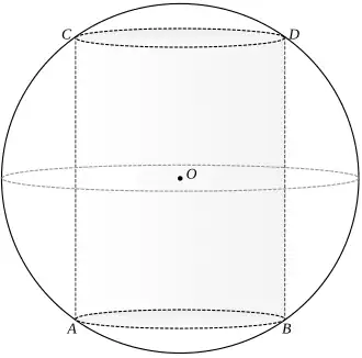 27. A cylinder is to be fitted inside a glass spherical display case with a radius of . (The sphere will form around the cylinder.) What is the largest volume that a cylinder will have inside such a display case?
