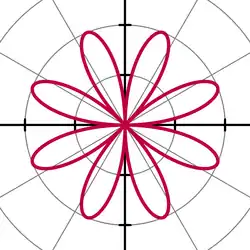 A polar rose is a famous mathematical curve that looks like a petaled flower, and that can be expressed as a simple polar equation,