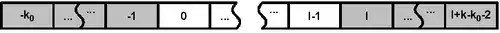 Explicitly defined boundaries are less common as the simple constant values are useful only for CA where we observe events on a quiescent background with period 1. The boundary can be defined as a single set (the left and the right part combined) of cell values of length (there is no boundary cell with index 0)