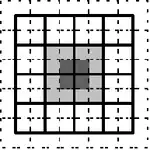 Is a simple square (usually 3×3 cells) with the output cell in the center. Usually cells in the neighborhood are described by directions on the compass sometimes the central cell is omitted.
