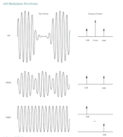 AM-DSB-SC and AM-DSB-C both suffer in terms of bandwidth from the fact that they both send two identical (but reversed) frequency "lobes", or bands. These bands (the upper band and the lower band) are exactly mirror images of each other, and therefore contain identical information. Why can't we just cut one of them out, and save some bandwidth? The answer is that we can cut out one of the bands, but it isn't always a good idea. The technique of cutting out one of the sidebands is called Amplitude Modulation Single-Side-Band (AM-SSB). AM-SSB has a number of problems, but also some good aspects. A compromise between AM-SSB and the two AM-DSB methods is called Amplitude Modulation Vestigial-Side-Band (AM-VSB), which uses less bandwidth then the AM-DSB methods, but more than the AM-SSB.