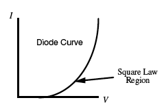 The voltage-current relationship of a diode is nonlinear near the knee and is of the form: