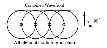 If all of the elements are positioned in such a way that the combined wave fronts reinforce along the array axis.