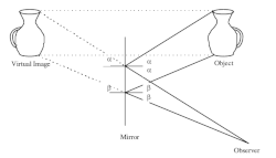 The reflected light can have the appearance of coming from either in front of or behind the reflecting surface. If the image appears to be behind the surface, as in the case of a mirror, it is referred to as a virtual image.