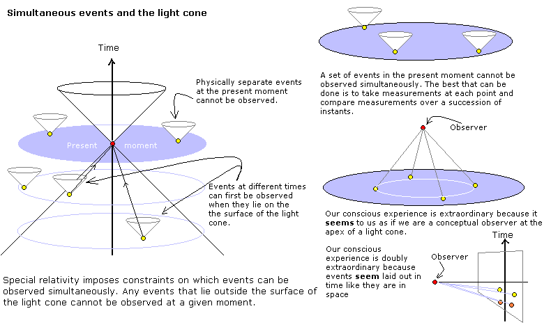The study of consciousness may seem to be esoteric or outside of the main stream but it includes some very real problems in science and philosophy. The most obvious problem is how we can see anything at all. Many people with a smattering of geometry tend to believe that they have a 'point eye' that sees the world, and this idea is known as perceptual "Naive Realism". Physical considerations show that this idea is highly contentious; we have two eyes with different images in each, normally the only images in the world are created by optical instruments such as the eye, and the photons that carry light to the observer cannot and do not all converge at a single point. Some of the discrepancies between the physical reality and our experience are shown in the illustrations.
