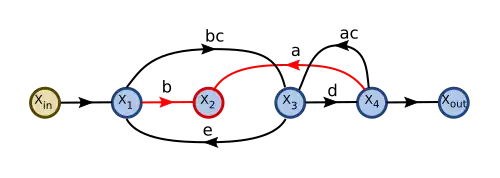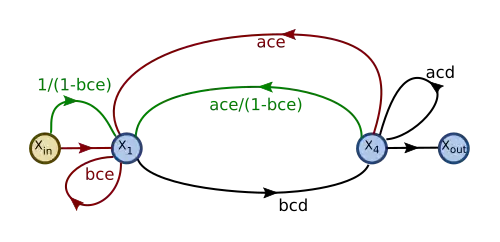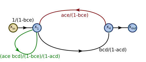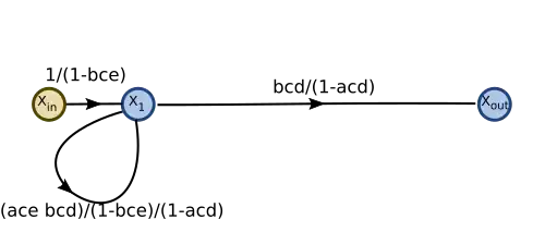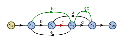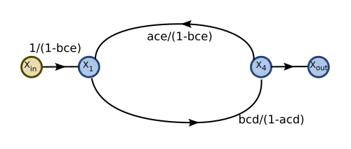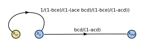 's outflow is then eliminated: is connected directly to using the product of the gains from the two edges replaced.