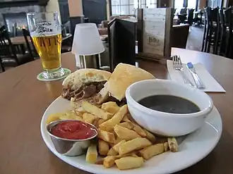 • In the original sandwich, the bread was dipped in the juice prior to adding the meat, rather than dipped at the table.