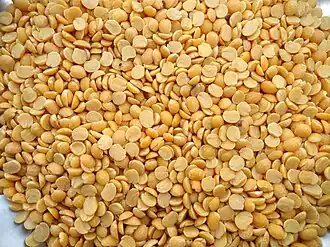 - Toor dal: split pigeon peas; golden yellow in color