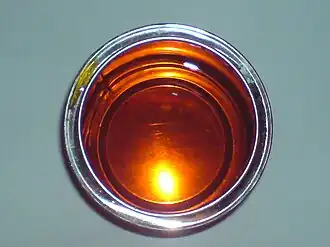 The syrup can be produced either like molasses is—i.e. from the cane syrup after the sugar has crystallized out[4]—or by adding acid to a sucrose sugar solution in order to invert it.[4][5] As its name would imply, golden syrup is translucent and pale golden in color.[3] It is very thick and viscous,[4] with a significant invert sugar content.[3][6] The flavor is fairly clean, with some additional complex, almost caramel-like notes.[3][7][4]