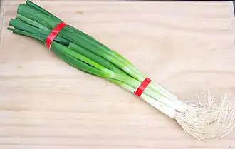 Scallion is commonly used in East Asian cuisines, especially those of China, Korea, and Japan, where it provides aromatic flavor and attractive green color.[6] It is very common as a finishing garnish,[2][3][6] but it may also be incorporated into stews, broths, stir-fries, and more.[3][2]