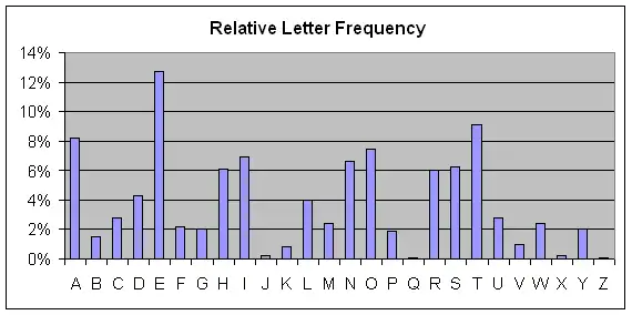 Frequency analysis is based on the fact that certain letters, and combinations of letters, appear with characteristic frequency in essentially all texts in a particular language. For instance, in the English language E is very common, while X is not. Likewise, ST, NG, TH, and QU are common combinations, while XT, NZ, and QJ are exceedingly uncommon, or "impossible". Given our example of all E's turning into X's, a cyphertext message containing lots of X's already seems to suggest one pair in the substitution mapping.