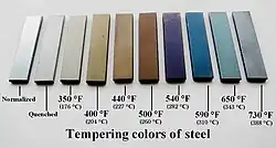 - As the heat reaches the polished face, the shiny surface will change color: first a pale straw, then a darker brown, then a bluish color (called peacock).