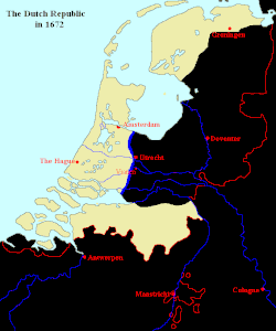 Dutch position in the Summer of 1672, Black is French and their allies territory
