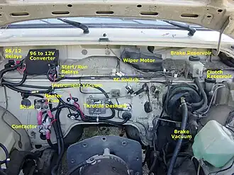 Branded products may be illustrated where such are commonly used in EV conversions. This should not be considered to be promotional or an endorsement, which otherwise might be considered to be in violation of Wikibooks policy.