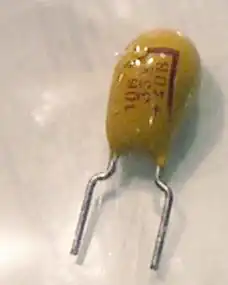 Slightly larger than ceramic, but still has small values (usually in the picofarad range).