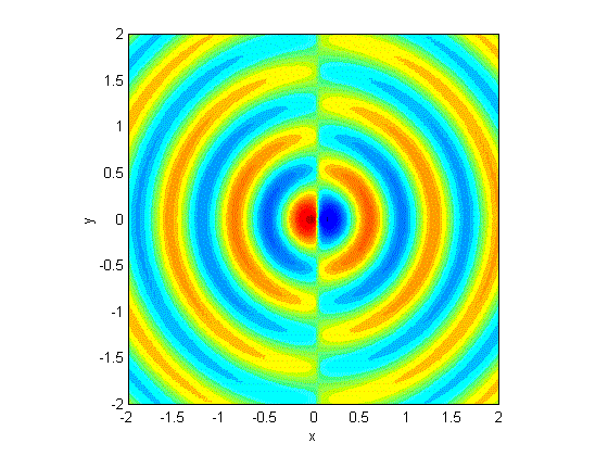 - Dipole sources: Similar to two monopoles placed side by side with opposition phase and . Dipoles are associated to the force according to the axe created by our joined monopoles. Like Monopoles they only appear when solid surfaces are involved in the domain.