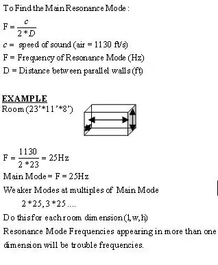 Reflected sound waves, good and bad, affect the sound you hear, where it comes from, and the quality of the sound when it gets to you. The bad news when it comes to reflected sound is standing waves. These waves are created when sound is reflected back and forth between any two parallel surfaces in your room, ceiling and floor or wall to wall. Standing waves can distort noises 300 Hz and down. These noises include the lower mid-frequency and bass ranges. Standing waves tend to collect near the walls and in corners of a room, these collecting standing waves are called room resonance modes.