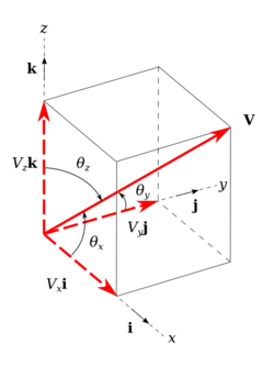 In order to describe a vector in 2 or 3 (orthogonal) dimensions, we use the unit vectors, , , and to indicate a vector's direction towards , , and , respectively (as seen in Figure 1.5).