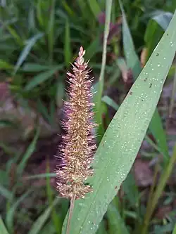 | Tribe Paniceae R.Br. (1814) contains 1498 species in 84 genera in 7 subtribes: Anthephorinae, Dichantheliinae, Boivinellinae, Neurachninae, Melinidinae, Panicinae, Cenchrinae.[1]