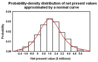 Probability-density distribution of net present values approximated by a normal curve. Source: Treasury Board of Canada, Benefit-Cost Analysis Guide, 1998