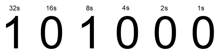 - Add together the denary values of all digits given as a 1. Ignore any 0s.