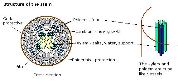 The stem provides support for the leaves and flowers. It also allows water and food to travel both up and down the plant.