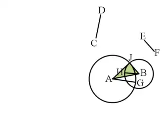 Given three line segments , and we build a triangle whose sides equal the segments.