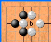 A single group of interconnected stones with one point of territory forms an eye. A group with two or more eyes cannot be captured, as at both points white could not play without the stone played having no liberties (called suicide, and is not a legal move in the Japanese rule set), and is a powerful structure within the game.