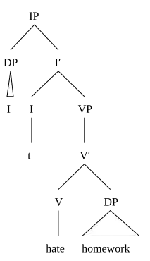 - I is the specifier and Ø is the head. Neither dominates the other.