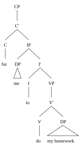Here, for is a complementiser for the IP him to be able to find his parents. As we have seen above, the non-finite clause does not assign nominative case to him; instead, this is handled by the complementiser for.