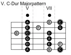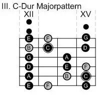 The number "1" indicates the position of the root note of a major scale. (German) the position of the barre chords, will help you find the root notes. You discover the root of the major scale by looking for the semitone steps.