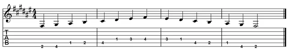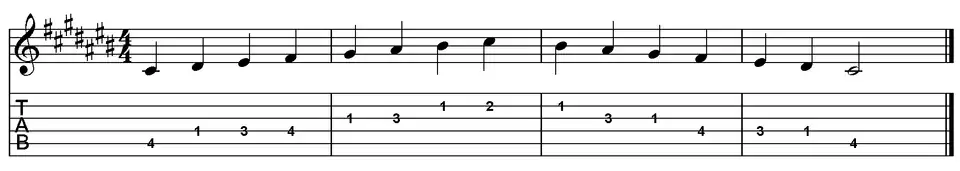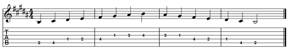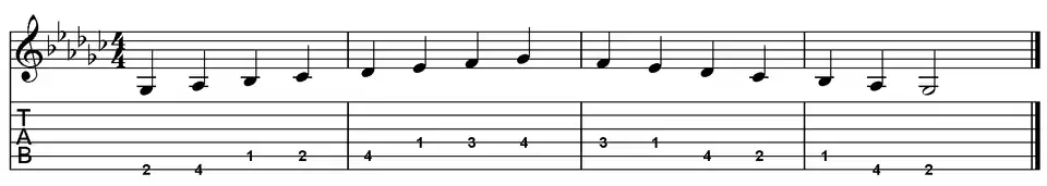 Anti-clockwise the root note of each scale forms the interval of a fourth with the root note of the following scale.