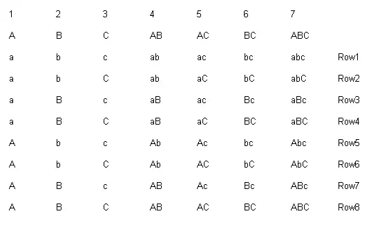 The Harvard Chart 1 2 3 4 5 6 7 A B C AB AC BC ABC a b c ab ac bc abc Row1 a b C ab aC bC abC Row2 a B c aB ac Bc aBc Row3 a B C aB aC BC aBC Row4 A b c Ab Ac bc Abc Row5 A b C Ab AC bC AbC Row6 A B c AB Ac Bc ABc Row7 A B C AB AC BC ABC Row8