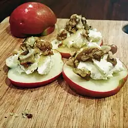 cheese, crushed walnuts and honey OR with peanut butter and muesli |