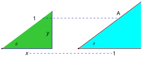 The dashed segment is 1 because it is the radius of the unit circle. Recall that the tangent of θ is , so we can verify that this segment is indeed the tangent by using similar triangles.