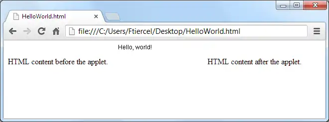 HTML content before the applet.<applet code="HelloWorld" height="40" width="200"></applet>HTML content after the applet.