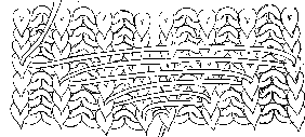 If you knit the front borders by racking every other row as previously mentioned, you can make the buttonholes in another way. When you have racked after 10 rows, make one row before you make the buttonholes. Choose them so that they will be racked after next row, then you need not turn them. After 16 rows you take off the comb and weights. Now place the one front piece on the machine with the wrong side out (Be sure to have the buttonholes in the right side). Place it on the needles over the border, but do not pull the needle up in the resting position; let the stitches stay on the hooks of the needles, otherwise you can't cast off without knitting a row. Place the end stitches on the edge and the middle in the middle. Place some more stitches where the rib borders are, and then gather the middle of the knitting and the middle of the needles, until you can spread them by yourself. Cast it all off at once.
