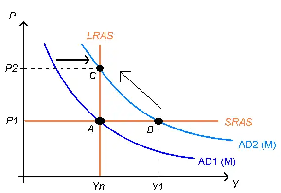 The theoretical background for is the assumption that in the long-run the economy will equilibrate and the output of an economy in its equilibrium is called the natural level of output. Money cannot influence the natural level of output because in the long-run changes in the money supply only result in corresponding price changes. This is called the neutrality of money: prices will adjust to the quantity of money in circulation. Another important concept is the superneutrality of money: the growth rate of the money supply does not affect economic output. Therefore sustained economic growth is no goal of monetary policy as such, but, as in the short-run monetary policy has an effect on real variables, a stabilization around the natural level of output.