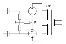 Fig.1 shows the trivial OPT connection i.e driven by the generator G thru two plate resistances rp (because of PP).