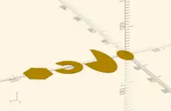 use <MCAD/2Dshapes.scad> ellipse(width=50, height=80); translate([100, 0, 0]) pieSlice([50, 100], start_angle=0, end_angle=250); translate([210, 0, 0]) donutSlice(20,50,0,300); translate([320, 0, 0]) ngon(6, 50, center=false);