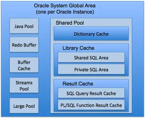 The result cache is composed of two areas; the SQL query result cache and PL/SQL function result cache.